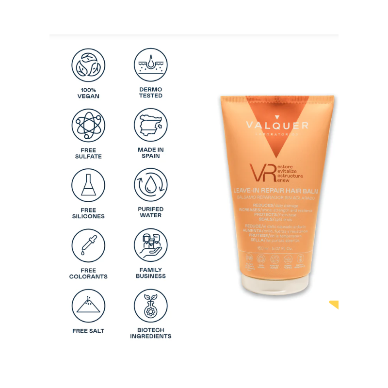 Descubre el secreto para un cabello radiante con el nuevo VR Bálsamo Acondicionador Sin Aclarado Reparador, un leave-in diseñado para transformar tu melena. Este tratamiento capilar todo en uno reduce el daño diario, sella las puntas abiertas y protege contra el calor y el estrés, dejando tu cabello más fuerte, brillante y resistente.