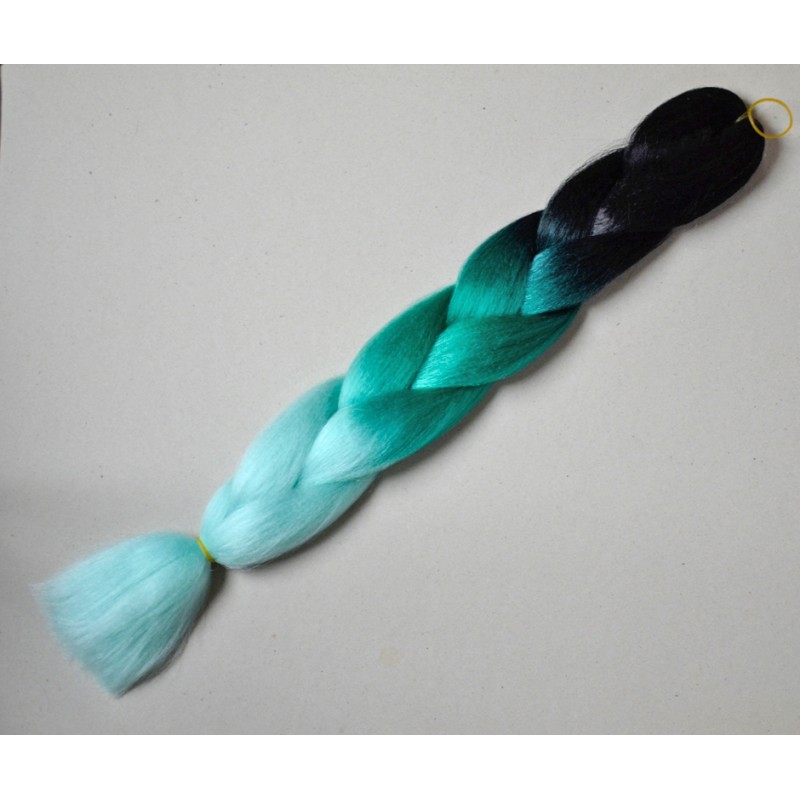 JUMBO BRAIDS KANEKALON TRICOLOR C8 (NEGRO-VERDE TURQUESA-VERDE TURQUESA CLARO) 100GR KIWIHAIR