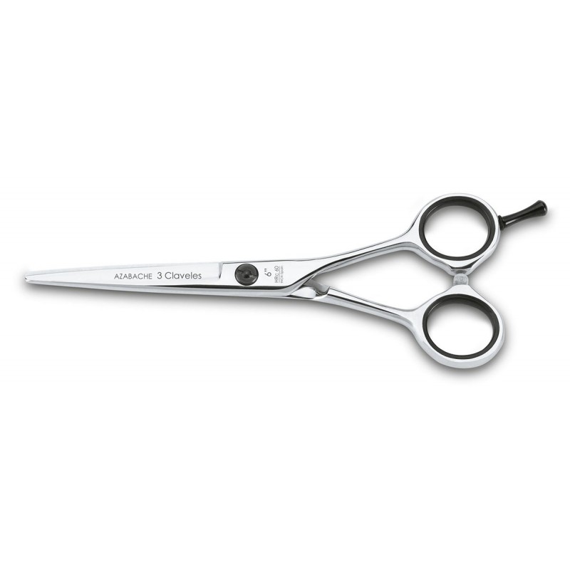 Azabache es una tijera de peluquería de corte 3 Claveles con filo de navaja, para técnicas de corte de cabello avanzadas.